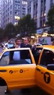 People are nuts. The smallest thing will set them off. In NYC, two businessmen fight over a taxi. The scuffle began on the street with chest bumping and shoving, then one guy raced to the taxi with the other guy close on his heels, then the two shoved their way into the open passenger door, with one man briefly putting the other in a chokehold. One man entered the cab victorious and the other slammed the door very hard as the taxi prepared to speed away.