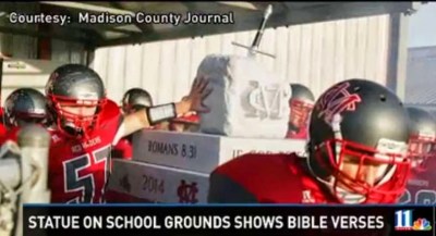 Last night I posted an essay reporting a new controversy that had erupted yesterday in our county. The public became aware that two anti-Christian groups had challenged the location (on school grounds) of a recently installed, privately donated sports monument because it contained two scriptures. The Freedom From Religion Foundation and the American Humanist Association separately had been contacted by local resident(s) and alerted to the alleged Constitutional infraction. The FFRF and AHA contacted our Superintendent of Schools with threatening letters insisting on immediate removal or modification of the offensive (to them) monument. The story I wrote is here: