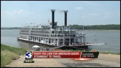 “The Mississippi River is just days away from reaching record low levels. River traffic is moving at a snail’s pace and some barge companies can no longer transport goods. Even the American Queen Steamboat can’t safely navigate the river. The huge vessel is tied up at the north end of Harbor Town, unable to finish a trip to Vicksburg.”