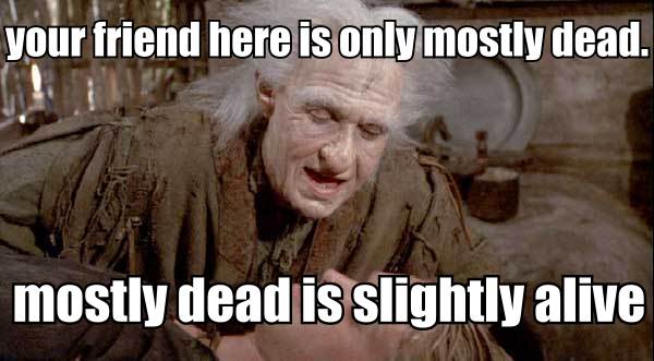 There’s a big difference between mostly dead and all-dead. Mostly dead is slightly alive. With all-dead, well, with all-dead there’s usually only one thing you can do.