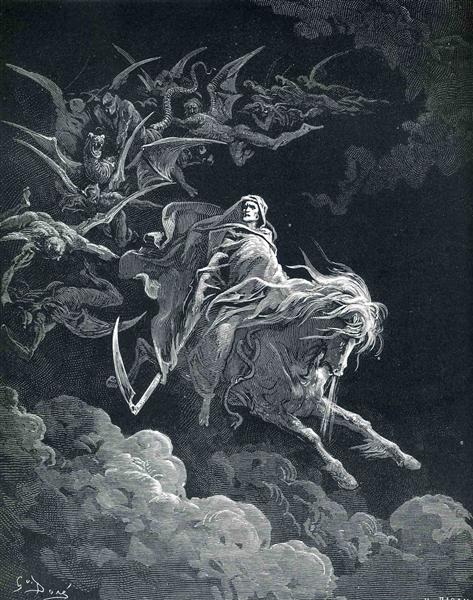 “When the Lamb opened the fourth seal, I heard the voice of the fourth living creature say, “Come!” I looked, and there before me was a pale horse! Its rider was named Death, and Hades was following close behind him. They were given power over a fourth of the earth to kill by sword, famine and plague, and by the wild beasts of the earth.(Revelation 6:7-8)