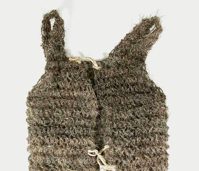 The effects to health of the 1783 Iceland Laki eruption was discussed in a paper by John Grattan, of The University of Wales, Institute of Geography and Earth Sciences. Grattan wrote: “The environmental impact of this event appears to have been severe, with reports of an acid dry fog in many parts of Europe, and often of associated damage to vegetation. It is argued that the meteorological conditions that led to this event are precisely the same as those which are associated with modern-day air pollution episodes in European conurbations, and the potential addition of millions of tonnes of volcanic gaseous material to the air over already polluted cities poses a rare, but in health terms potentially major, risk.” (Above, a sackcloth hairshirt) Sackcloth is a very coarse, rough fabric woven from flax or hemp.