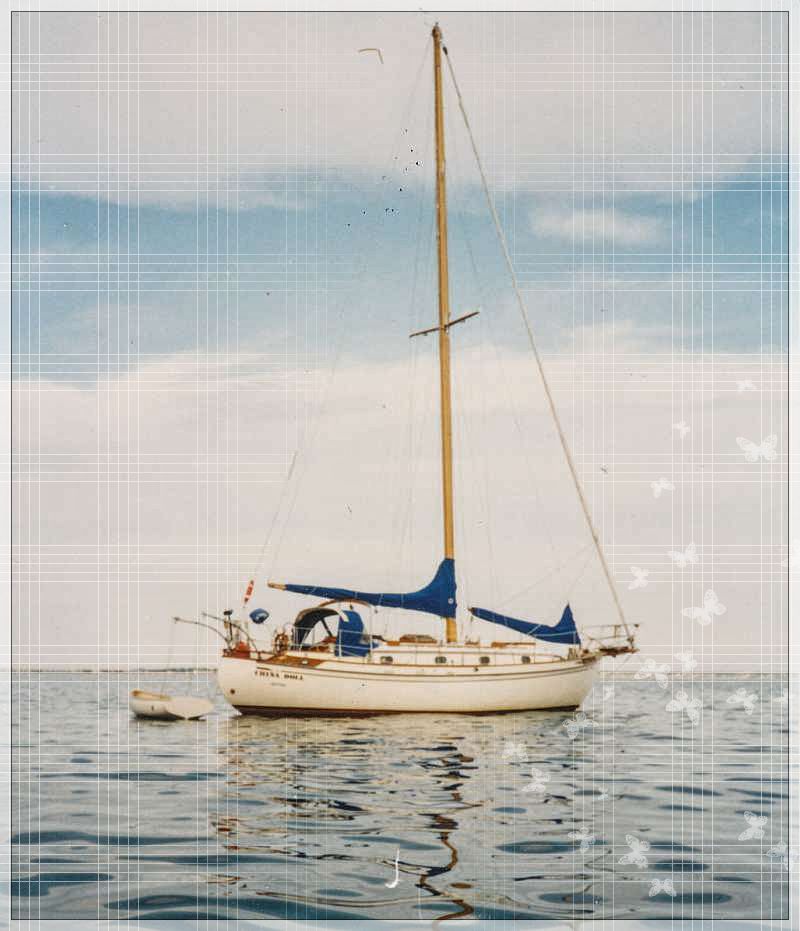 Below is a photo of our vessel. A Tayana 37, Taiwanese made 37′ boat with wooden mast, wooden bowsprit, full keel, faux-lapstrake, beamy, lots of beautiful teak, and 24,000 pounds of solid, if not immediately responsive, live-aboard sailing yacht. I used to joke that we had to make a reservation to get her to come about. She was a good boat.