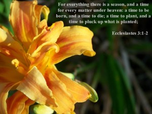 For everything there is a season, and a time for every matter under heaven: a time to be born, and a time to die; a time to plant, and a time to pluck up what is planted; (Ecclesiastes 3:1-2).