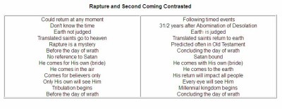 I’d like to reiterate that the Rapture (when Christ calls for His Bride in the air, 1 Thessalonians 4:15-17) and the Second Coming (when His feet touch down at the Mount of Olives at the end of the Tribulation, Mt 16:27, Zechariah 14:4) are two separate events.
