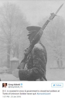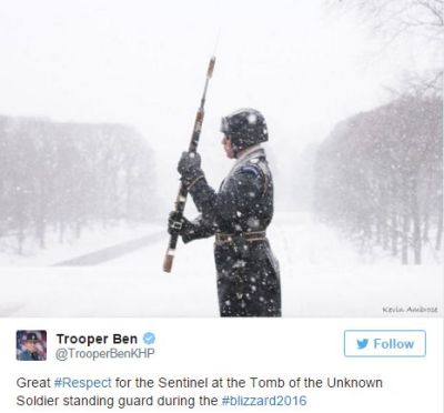 This past weekend’s latest ‘snowmageddon’ blizzard, this time, affecting Washington DC, elicited a slew of photos showing the dedicated soldiers protecting the Tomb of the Unknown Soldier at Arlington Cemetery.