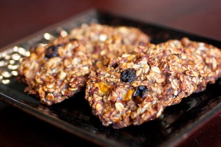 The write-up says, “I’d very loosely call these treats cookies. Why? The recipe is basically two ingredients, oats and bananas, plus a few add-ins. Also, it’s pretty healthy. Probably with my add-ins they’re only about 40 calories each, but don’t let that scare you. These “cookies” are actually very tasty, like baked banana oatmeal in portable form.”