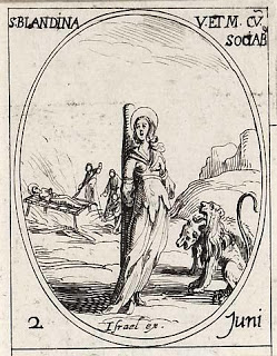 Lord, I am weak of fortitude, but I can be strengthened supernaturally, like Blandina, to endure all things. Would I be strong enough to pray for and encourage compatriots whilst impaled on a stick, suspended above milling and hungry lions? No. But I can do all things through You who strengthens me. You did not desert Blandina in her trial, and no matter what comes for me and my faithful brethren now or in the future, you will not desert us. You are Lord, and You are faithful.