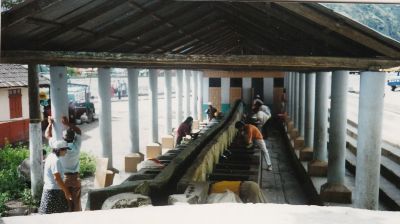 | Laundromat in Baños, Ecuador. It cost a quarter and they give you a rock to use to scrub. Soap not included. EPrata photo |