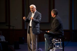 Ravi Zacharias talks to pastor Joe Coffey at Christ