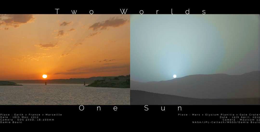 APOD: May 12, 2015. Left, Marseilles France, Earth. Right, Elysium Planitia, Mars |