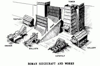 “In his Commentarii de Bello Gallico (Commentaries on the Gallic War), Caesar describes how at the Battle of Alesia the Roman legions created two huge fortified walls around the city. The inner circumvallation, 10 miles (16 km), held in Vercingetorix’s forces, while the outer contravallation kept relief from reaching them. The Romans held the ground in between the two walls. The besieged Gauls, facing starvation, eventually surrendered after their relief force met defeat against Caesar’s auxiliary cavalry. The Sicarii Zealots who defended Masada in AD 73 were defeated by the Roman legions who built a ramp 100 m high up to the fortress’s west wall.”