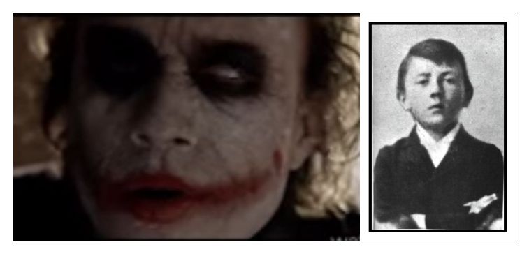 | Left, cartoon character evil Joker. Right, all too real Adolph Hitler as a boy |