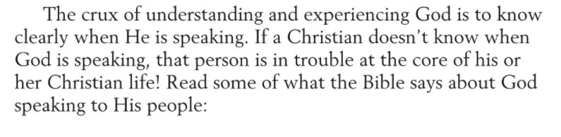 For example, as in Experiencing God, the Blackabys say much about prayer being two-way communication with God (pp. 113, 117, 122, 131) — we speak, then wait for God to speak.