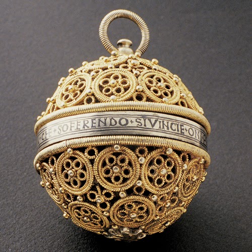 Pomanders are traditionally mixtures of fragrant substances which are often held within a container – although the term can also be applied to the container itself. The odours given off by the mixtures were once believed to offer protection against disease and they are particularly associated with times of plague, from the 1300s onwards. Their use is linked to centuries-old miasma theories which suggested that disease was transmitted through foul-smelling air. Keeping a sweet-smelling pomander close by was believed to offer protection.