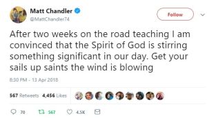 Folks with discernment warned about Matt Chandler years ago. They, and I, warned about his charismatic pursuits in 2018, when Chandler said he and his church came out with a belief that the sign gifts continued (miracles, prophecy tongues etc). Chandler then also described what he termed as a mini-prophecy given to him and in turn, encouraged his congregation to speak prophecy to each other, but it was confusing. I’ve never seen a charismatic believer stay in one spot. Either they repent and return to the cessationist position, or they continue down charismatic tracks and then go off the rails. Continuationists’ beliefs open the Bible when it is a closed canon. It degrades the perfection of the word and eventually degrades the soul.