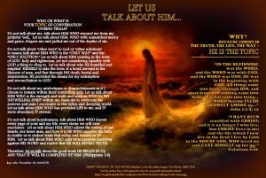 The beginnings of a trial can be tumultuous and heart-wrenching, as well as physically and emotionally exhausting. But as we seek Scriptural guidance and encouragement from fellow believers, we quickly see that all of our communication and advice must center upon Christ and our personal relationship with Him. It is when one relies upon “other” solutions (or self), that one quickly experiences the futility of our “natural” reasoning and responses. When our trials exclude Christ as the resource of resolution, fleshly reactions will lead us into deeper distress with greater turmoil; an impasse can arise and anger, hurt feelings, confusion and chaos usually pursue.