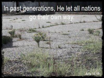 In Acts 14:16, the Apostle Paul said, “In the generations gone by, He…God…permitted all the nations to go their own way.” This is the story of history. All the nations of history go their own way. So like the nations of old, like the nations past, we follow the same cycle of having the truth, rejecting the truth and being abandoned by God. ~MacArthur